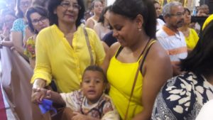 O interior da Basílica do Carmo estava repleto de fiéis vindos de várias partes da cidade, como a professora aposentada Laudicéia Ferreira. Vestindo amarelo, a devota estava acompanhada da filha Maria Carmélia e do neto caçula José Afonso, de três anos de idade. “Viemos de Jardim Paulista e vamos passar o dia aqui, agradecendo pela saúde de meu neto, que teve meningite no ano passado e se salvou. Pedimos com fervor a intercessão de Nossa Senhora do Carmo e ela não nos abandonou”, revela emocionada a avó da criança.