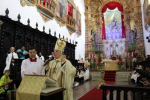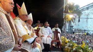 O frei Cassiano Barbosa, frade carmelita, informou que este ano a Província Eclesiástica Carmelita está particularmente feliz, pois comemora os cem anos de publicação do decreto que agregou a basílica menor (do Carmo) à Basílica de São Pedro, no Vaticano. Às 10h da manhã, dom Antônio Tourinho, bispo auxiliar da Arquidiocese de Olinda e Recife, presidiu a missa solene, concelebrada pelo frei Altamiro Tenório da Paz, Prior Provincial da Província Carmelitana Pernambucana, frei Joaquim da Luz, vigário episcopal do Vicariato Boa Viagem, padre Bruno Lira, frei Carlos e padre Robson. O padre Augusto César, vice-chanceler da Arquidiocese, atuou como cerimoniário da celebração. Em sua homilia, dom Antônio Tourinho destacou que no Recife, a mãe de Deus é honrada com o nome de Mãe do Carmelo. O bispo auxiliar convidou a assembleia a repetir: “Viva a mãe de Deus e nossa, sem pecado concebida!”