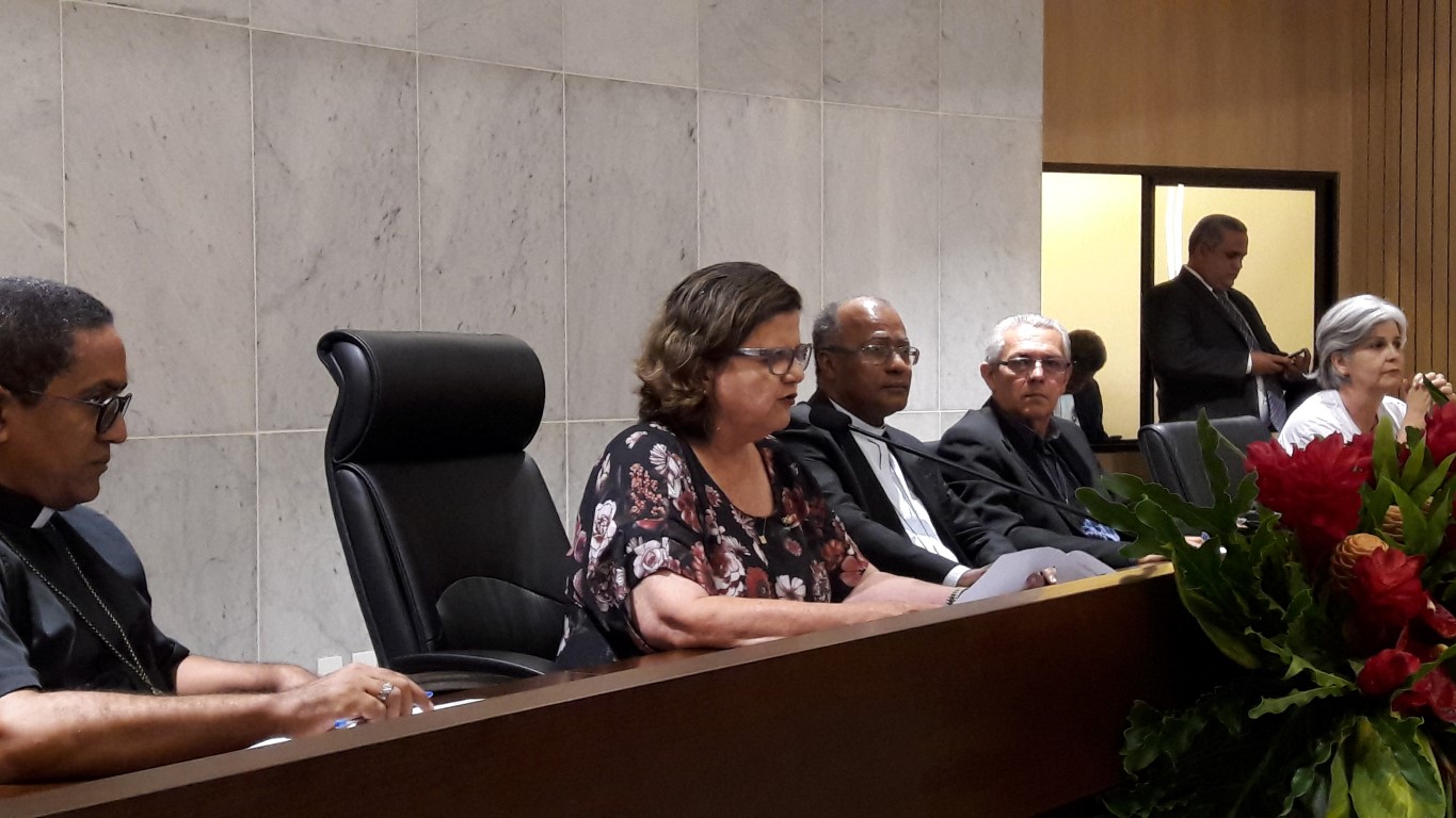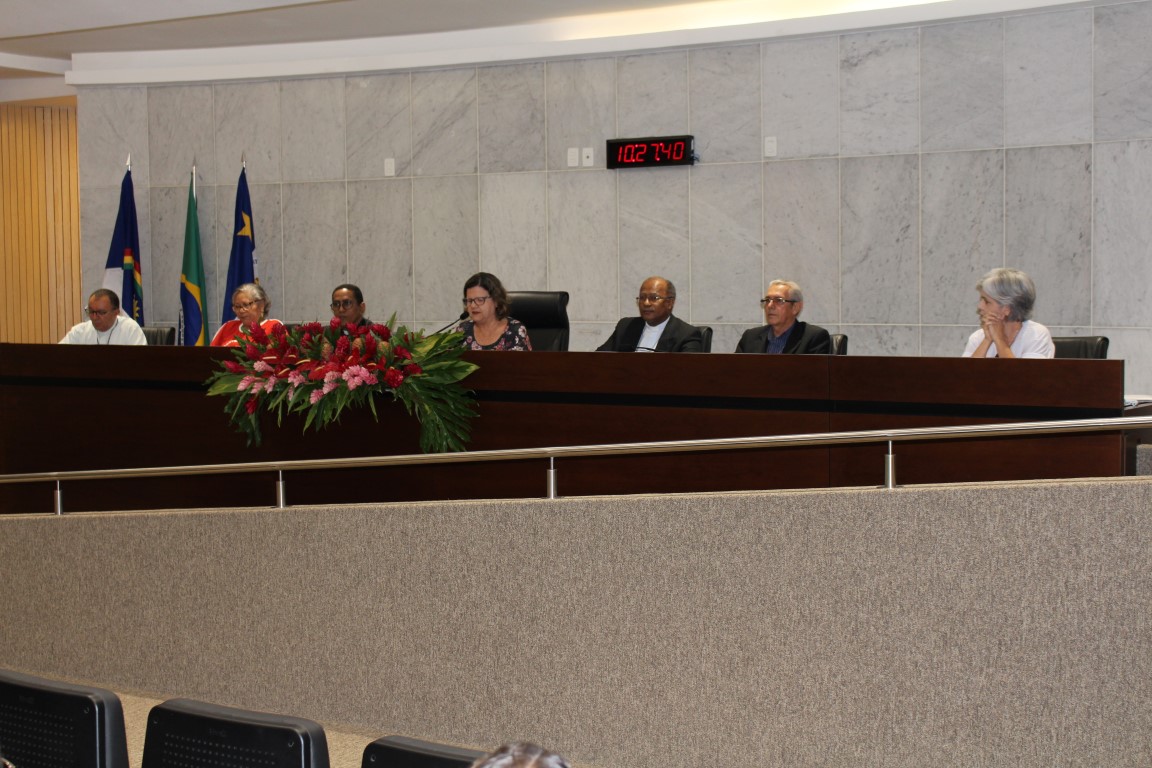 Formaram a mesa de autoridades a parlamentar autora do requerimento, Teresa Leitão, dom Limacêdo Antônio, Kênia Pedrosa, representando a Comissão Arquidiocesana do Laicato, o diácono Jaime Bonfim, assessor eclesiástico do Encontro de Irmãos, o padre Josenildo Tavares, coordenador das Pastorais da Arquidiocese de Olinda e Recife, o professor Celso Pontes, membro do Encontro de Irmãos e Angelita Marta da Silva, coordenadora arquidiocesana do movimento. Ao longo da solenidade, espontaneamente os membros do Encontro de Irmãos entoavam canções que exprimiam a força e a fé no decorrer de cinco décadas de evangelização: “Encontro de Irmãos é humilde, é forte, caminha pra vida, vencendo a morte. Lutando com fé, sem desanimar. A força é de Deus, só Ele é quem dá!” (trecho do cântico “A Tua Palavra”, de autoria de Gercina, Setor Beberibe).